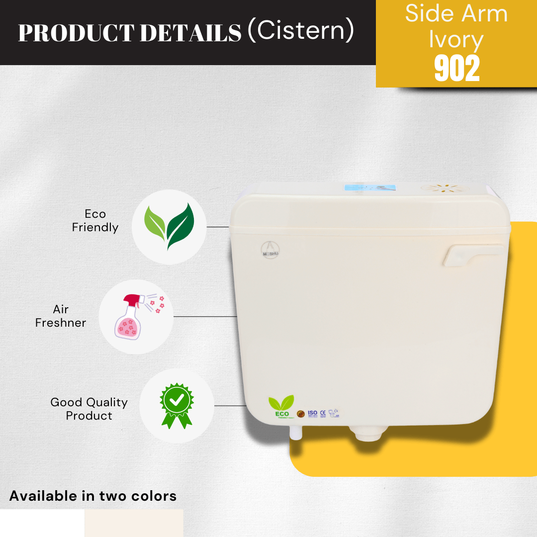 - Elegant Design: With its clean, contemporary style that exudes sophistication, the ivory Mashu cistern in toilet elevates the visual appeal of any bathroom.