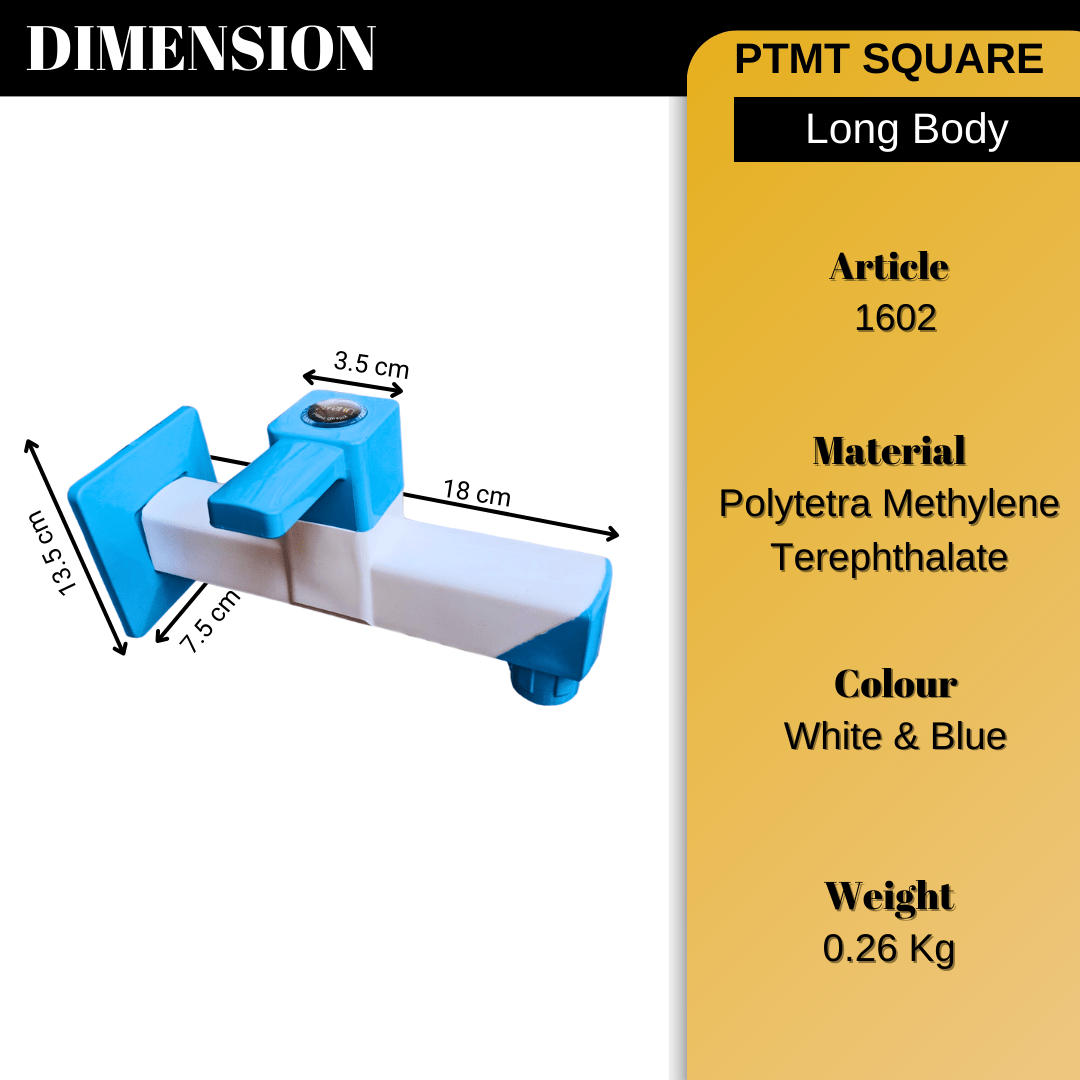 Mashu PTMT Square Plastic PTMT Long Body Tap For Bathroom & Kitchen(Blue & White)